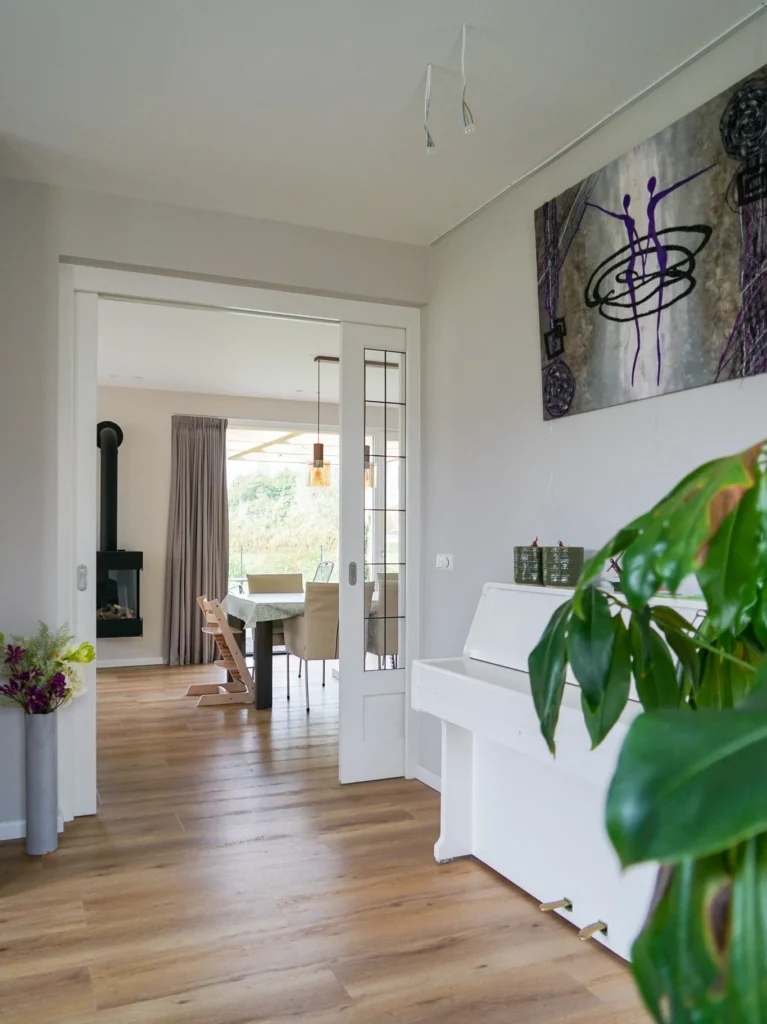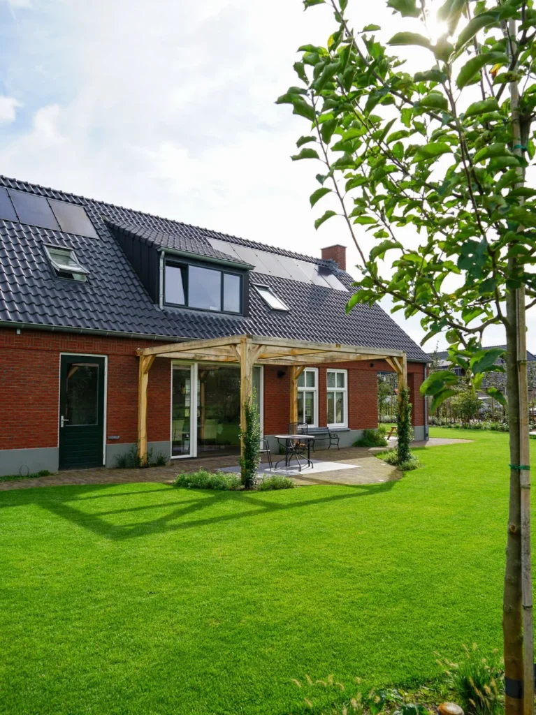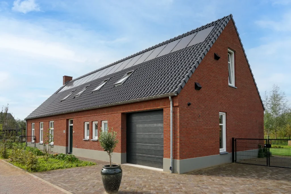 Deze woning is de hoofdwoning van een erf. De woning heeft een inpandige garage en is uitgevoerd in de stijl van een boerderij. En dat met een modern jasje. Met traditioneel metselwerk, een gestucte plint en een eiken draagconstructie.